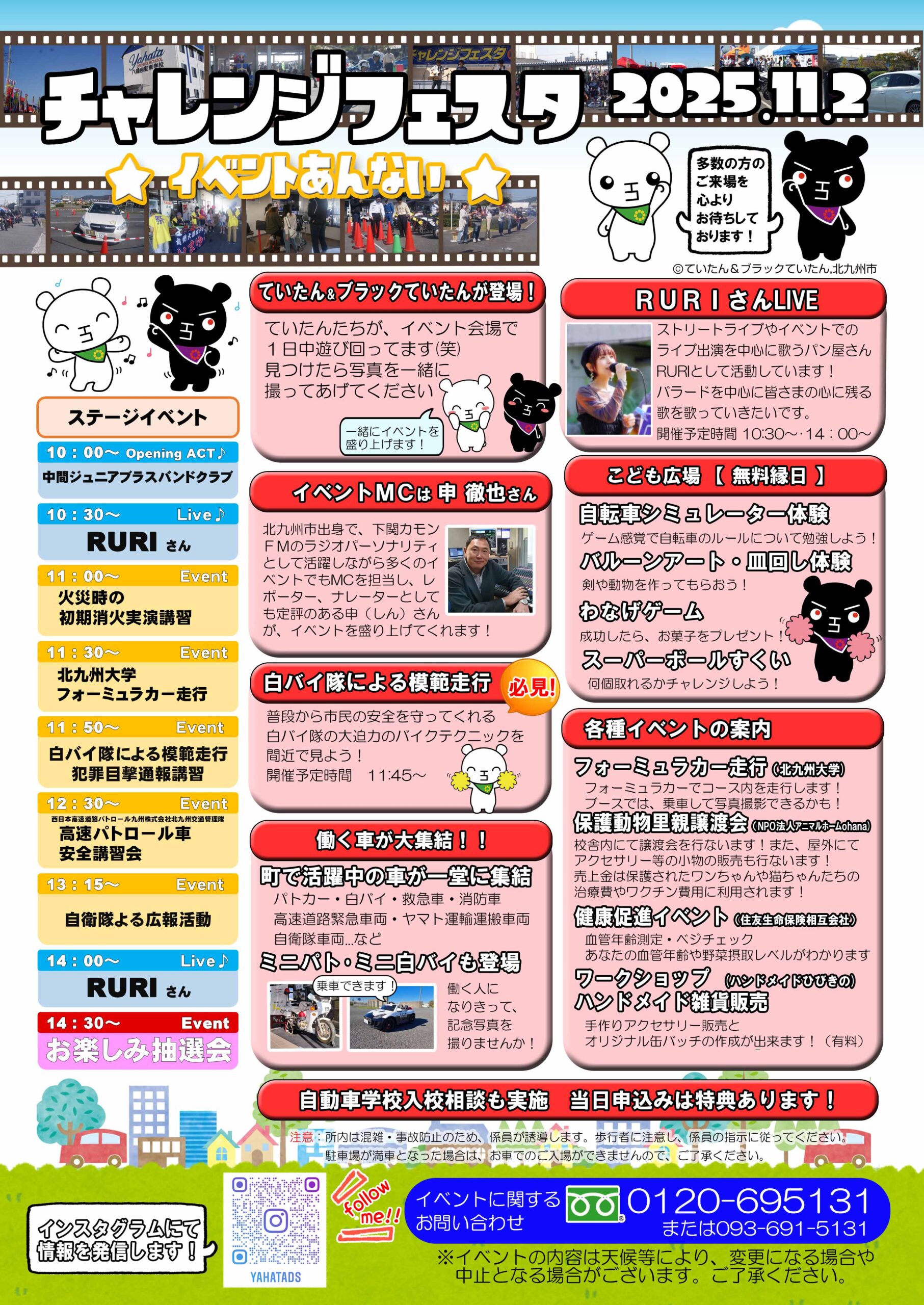 八幡自動車学校では、地域の皆さまとふれあい、楽しみながら交通安全を身近に感じていただけるイベント「チャレンジフェスタ」を開催します!