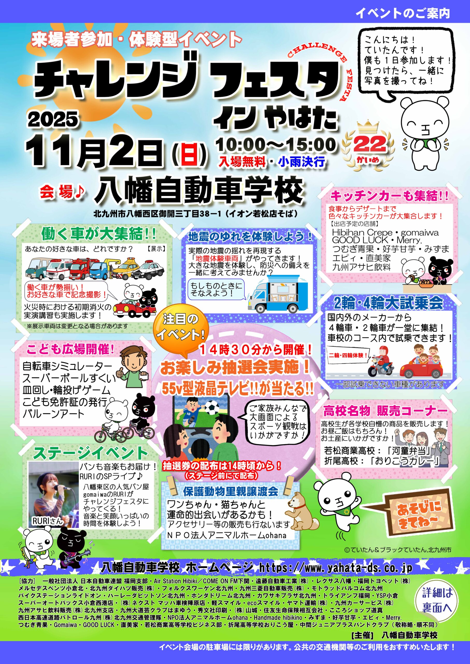 八幡自動車学校では、地域の皆さまとふれあい、楽しみながら交通安全を身近に感じていただけるイベント「チャレンジフェスタ」を開催します!