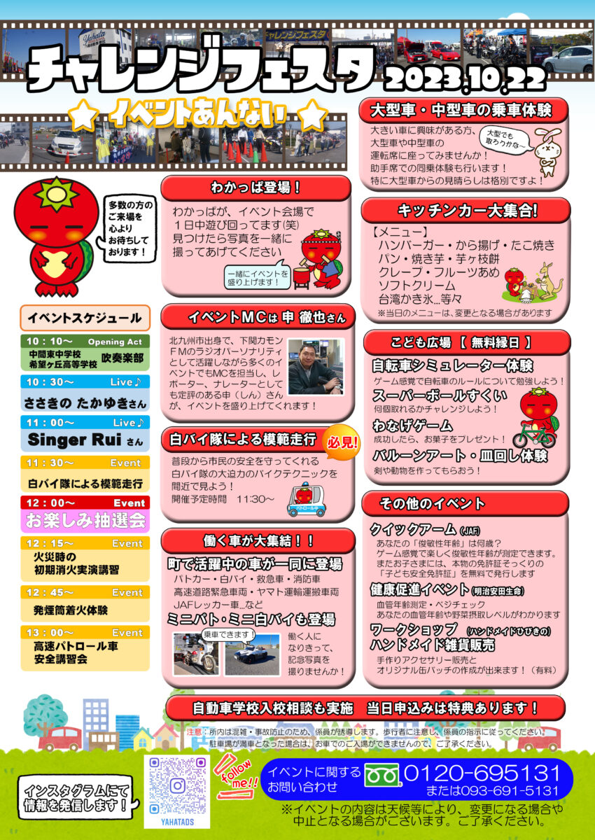 チャレンジフェスタ~ライダーズ~は中止となってしまいましたが、10月22日のチャレンジフェスタは、天候も良さそうですので盛大に開催する予定です!